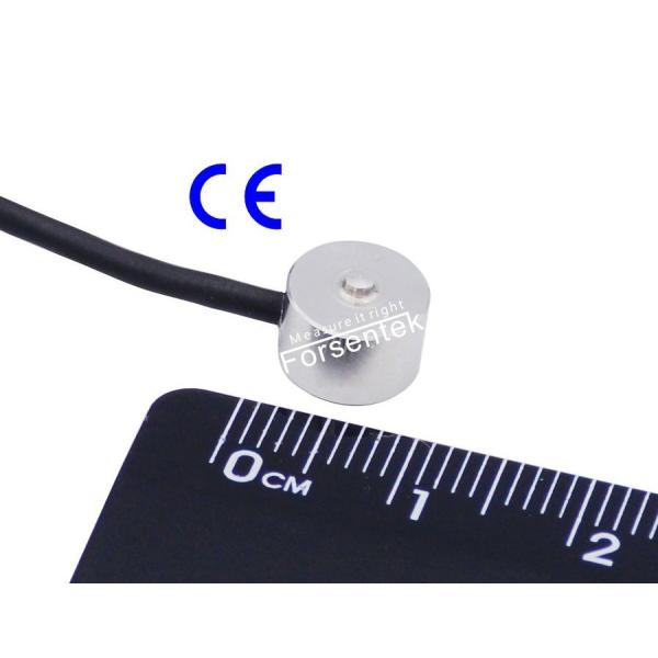 Micro Compression Load Cell FC8E is made of stainless steel based on metal foil stain gauge technology intended for compression force measurement. 1000 ohms high resistance strain gauge delivers better stability compared to commonly used 350ohms gauges, miniature load cell FC8E offers 0-5kgf / 0-10kgf / 0-20kgf / 0-50kgf (0-50N / 0-100N / 0-200N / 0-500N) four measuring ranges to choose from. Small size button type compression load cell FC8E is featured with only 8mm outer diameter and 6mm total height which makes it extremely suitable for force measurement applications with limited mounting space. Typical applications for transducer FC8E are such as clamping force measuremen, force overload protection, load distribution analysis, pressing die force measurement, auto equipment, assembly line and so on.